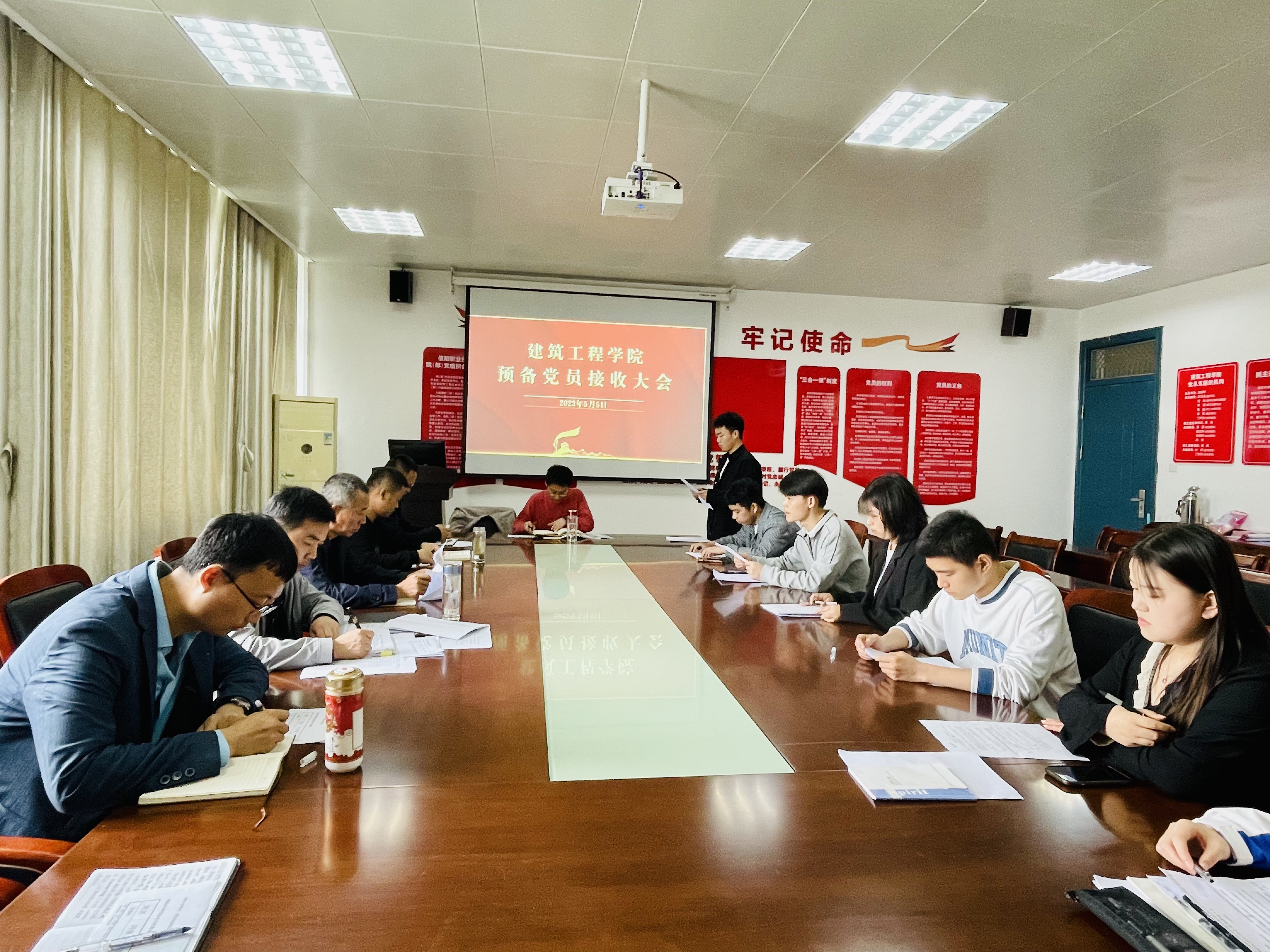 5月5日上午,yl9193永利学工党支部在3013党员活动室召开了2023上半年员工预备党员接收大会,公司党总支书记孟朝晖、学工党支部书记董晶和学工党支部全体党员参加会议。会议由董晶主持。