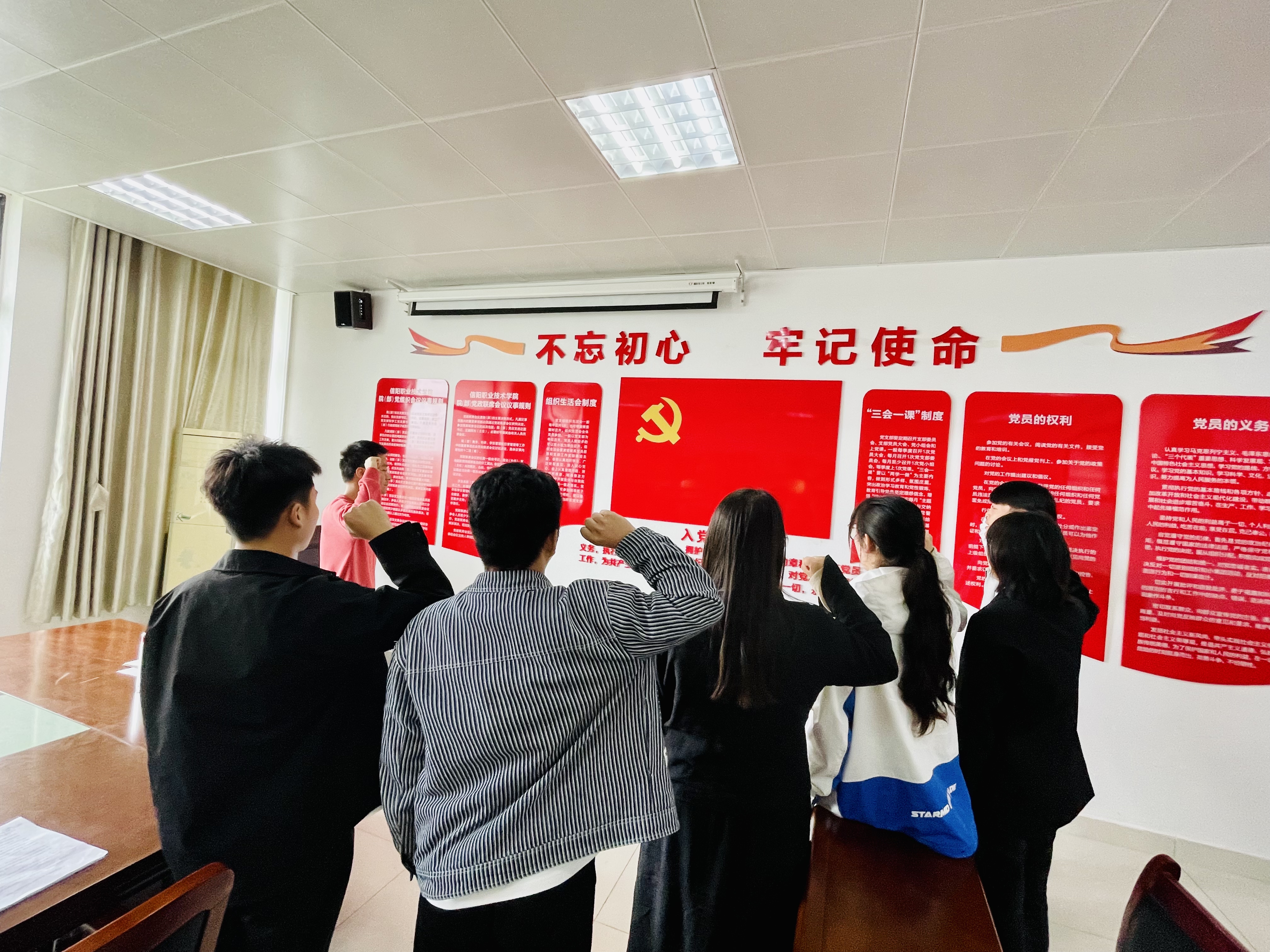 大会上,7名员工党员发展对象依次汇报了个人情况,表明了入党意愿;与会党员教师对申请人能否入党展开讨论,并通过无记名投票,一致同意接收7名党员发展对象成为中国共产党预备党员;学工党支部组织员陈峙带领新入党员工面向党旗庄严宣誓。
