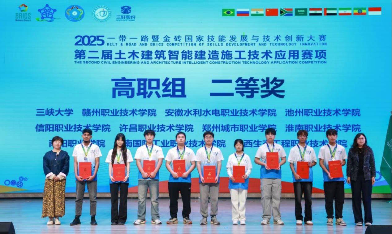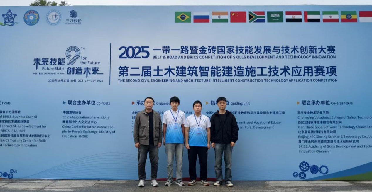 近日,2025“一带一路”暨金砖国家技能发展与技术创新大赛之第二届土木建筑智能建造施工技术应用赛项决赛在重庆安全技术职业公司隆重举行,yl9193永利参赛队伍凭借扎实的专业知识和出色的现场发挥,荣获全国二等奖的优异成绩。