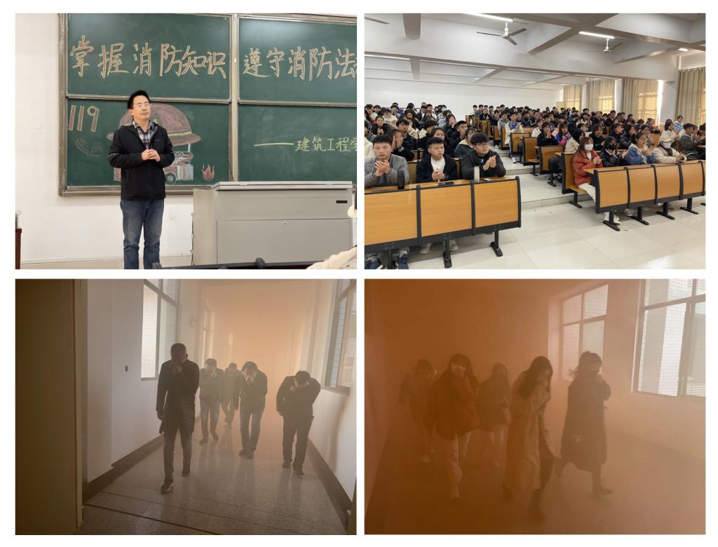 吴长城从高校消防安全入手,通过大量的校园火灾案例分析,用生动的图片和大量影像资料,深入剖析了高校火灾发生的原因,指导员工正确使用灭火器、避免火灾逃生的方法。最后,在公司楼梯模拟了火灾环境,组织师生共同有序安全逃生,使师生切实感受深处火灾环境下安全逃生的全过程。