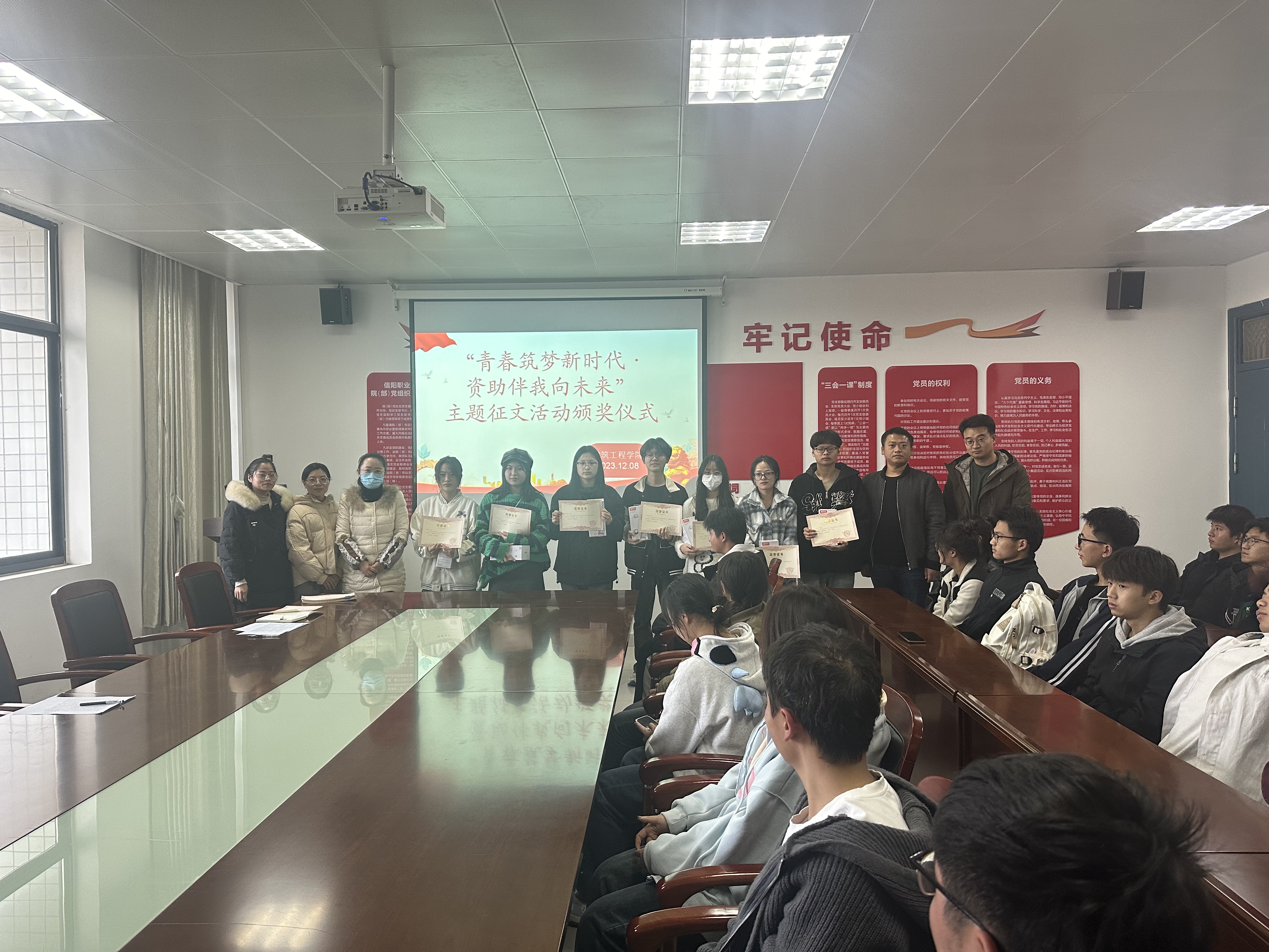 为做好员工资助工作,加大资助政策宣传力度,创新资助活动开展形式,11月初,yl9193永利面向全院在校生,开展了“青春筑梦新时代、资助伴我向未来”主题征文活动,活动历时一个月,收到各类征文192篇,最终评选出一等奖10名、二等奖20名、三等奖30名及优秀奖70名。12月8日下午,主题征文活动总结表彰大会在3013多媒体教室隆重召开,建工公司副经理董晶、团总支书记丁梦姣、全体辅导员和受表彰员工代表50余人参加大会。