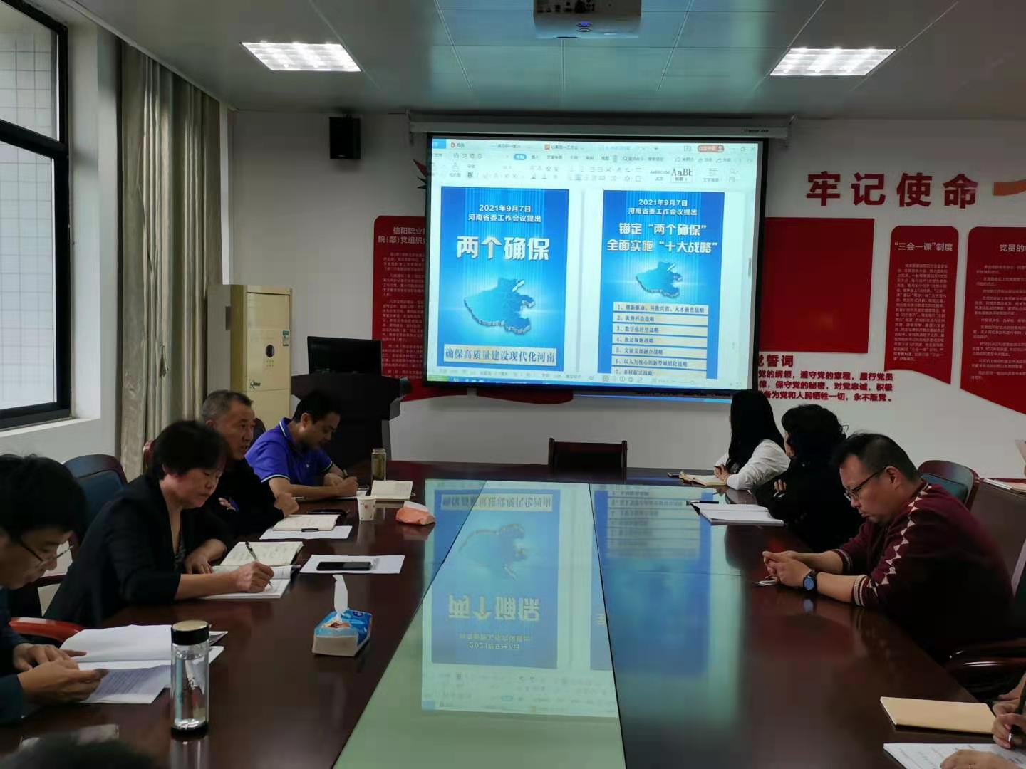 根据中共河南省委高校工委、中共河南省教育厅党组《关于认真学习宣传贯彻落实省委工作会议精神的通知》要求,10月5日,yl9193永利组织全体教师召开专题会议认真学习省委书记楼阳生在省委工作会议上的重要讲话精神,讨论贯彻落实意见。