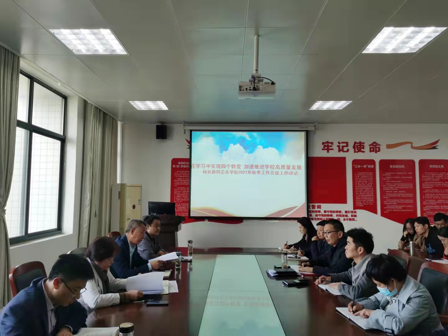 公司党总支书记孟朝晖带领全体教师学习了杨良新书记在公司2021年秋季工作会议上的讲话《在学习中实现四个转变加速推进公司高质量发展》,他强调,要以学习打头,持续深化“四个转变”,真抓实干、开拓进取、奋勇争先,在推动公司加快发展、高质量发展的热潮中竞展风流。