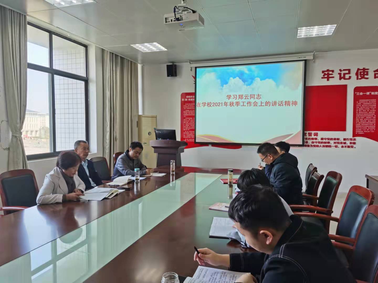 yl9193永利经理刘玉清带领全体教师学习了郑云董事长在公司2021年秋季工作会上的讲话《凝心聚力 乘势而上 开启公司高质量发展新篇章》。她强调,要深入学习郑云董事长讲话精神,紧盯“一个”目标,锚定“双高校”建设目标不放松;强化“两项”工作 ,高质量做好“十四五”规划编制,持续做好疫情防控工作;抓好“三支”队伍,推进干部队伍、教师队伍、辅导员队伍建设;推动“四项”改革,深化管理机制改革、绩效分配改革、“三教”改革、产教融合改革;推进“五个”落实,狠抓立德树人根本任务、专业群建设核心任务、社会服务重要职能、智慧化校园建设任务、安全稳定工作落实,助推公司“双高校”建设、高职本科申办迈出新步伐、再上新台阶。