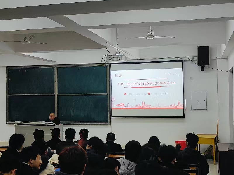 在3010多媒体教室,黄新以“中共一大13位代表的选择去向和迥异人生”为题,为150余名员工讲授了一堂主题鲜明、内涵丰富的专题党课。党课上,黄新详细介绍了13位中共一大代表的人生历程和人生归宿,围绕中共一大代表的六种人生分类,从信仰的坚定程度、理论的认知程度、气节的坚守程度三个方面深入浅出地剖析了迥异人生的由来,并结合中共一大代表的进退沉浮,成败得失,给在场员工提出四点启示:一要坚定马克思主义理想信念不动摇;二要以强烈的历史使命感担当一切;三要在坚持党性锤炼中健康成长;四要始终立足于人生的道德高地。同学们纷纷表示,聆听了黄主席的党课,提升了理论知识,获得了思想启迪,更加深刻地认识到自己肩负的历史使命和时代责任,今后必将更加刻苦学习,为实现中华民族伟大复兴中国梦奉献青春力量。