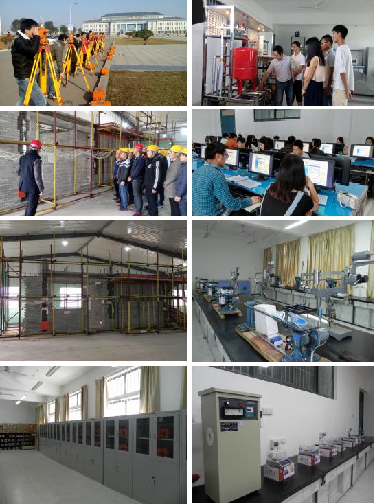 中央财政支持的“建筑技术”实训基地(职业技能鉴定中心)拥有仪器设备总价值达1200多万元,涵盖建筑材料检测、建筑力学实验、工程测量实训、工程管理沙盘模拟实训、工程造价软件及建筑CAD实训、工程招投标模拟实训、工程资料室、BIM技术实训、建筑装饰设计实训等25个校内实验实训室,完全满足公司建筑工程技术、工程造价、智能建造技术、城乡规划等各层次、各专业的实验实训教学工作。与河南五建第二建筑安装有限公司、河南信阳潢川城投建鼎住宅工业股份有限公司、信阳东骏节能建材科技有限公司、河南信阳建筑总公司等20余家企业建立了稳定的校外实训基地。同时具备河南省建设行业建筑工人职业技能培训及建筑行业施工员、质检员、测量员、资料员、材料员、安全员等职业技能证书的培训和组织考试资格。