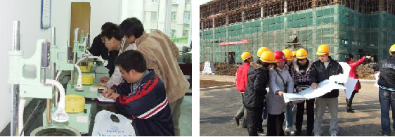 另外采取“123”人才培养模式,这里的“3”指教学过程分为3个阶段,即:前两年校内的理论教学、第五学期的专业技能综合实训(包括图纸识读、工程测量、基本施工技术、建筑CAD)、第六学期的毕业顶岗实习,以实现公司与企业的零距离对接。员工毕业实习前可获得“施工员”、“质量员”、“安全员”等行业职业技术证书。