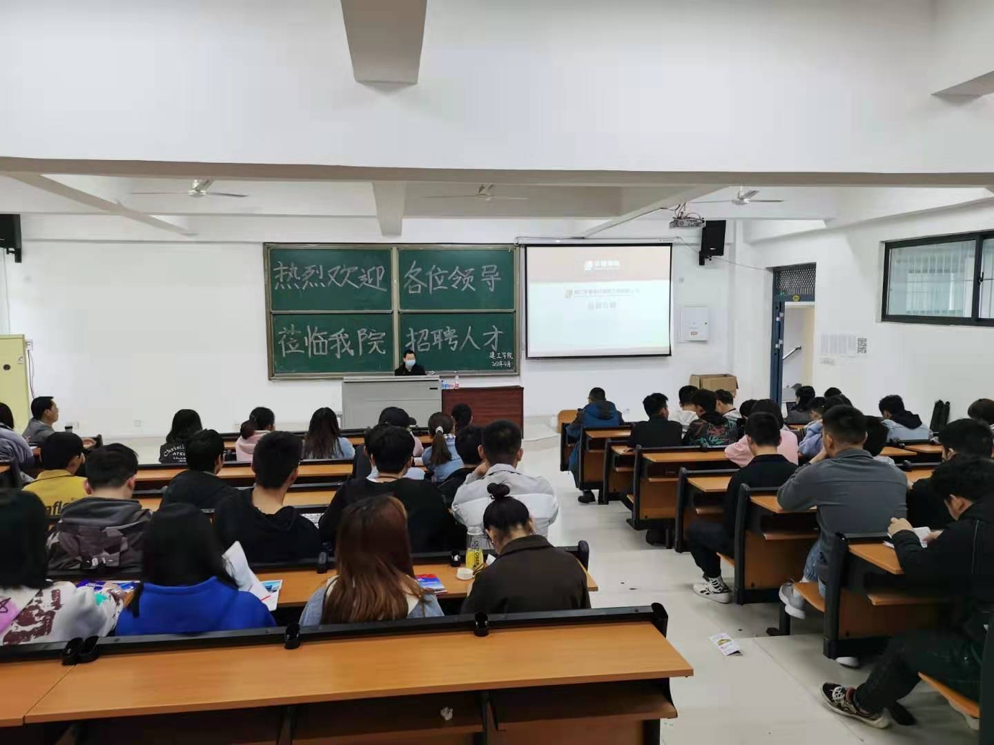 为积极服务员工实习就业,指导员工从就业环境、就业待遇、就业发展等方面深入了解就业问题,2021年4月24日,建工公司在3010多媒体教室举办了专场招聘会。厦门华丽设计装修工程有限公司、安徽昊业建设发展有限公司、苏州广德浩建筑工程管理咨询有限公司、河南地乾基础工程有限公司、广东邦普循环科技有限公司等7家用人单位代表和2019级全体员工参加招聘会。