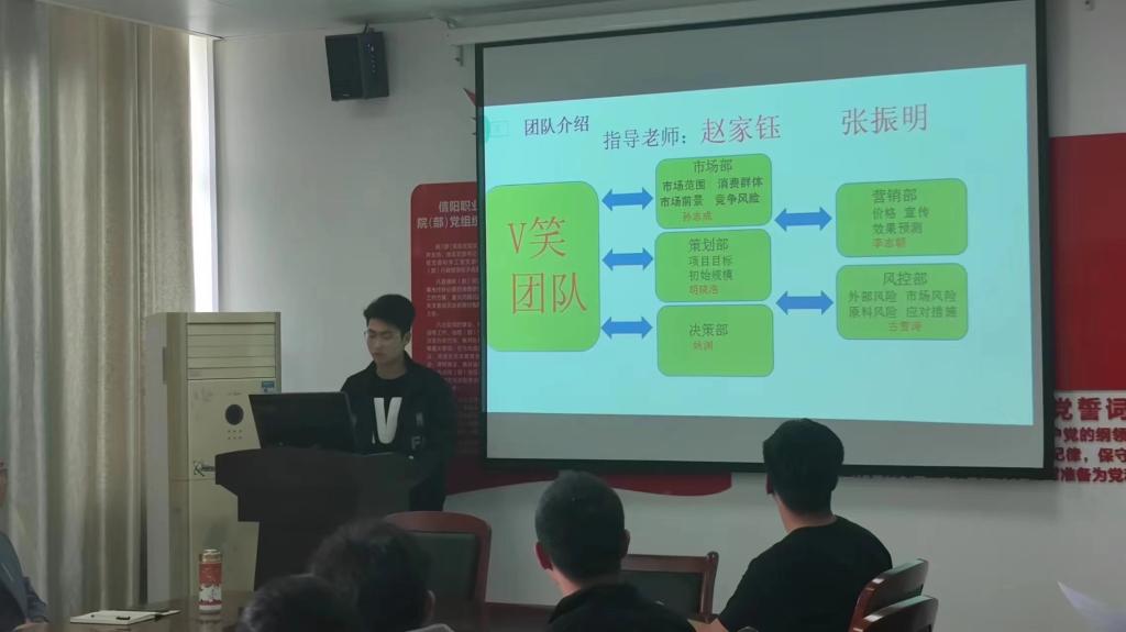 从各班级评选推荐出的9支项目团队依次上台,结合PPT展示,陈述项目内容。评委老师根据主讲人的描述提出问题,展开讨论。经评委打分,21级工程造价2班和21级智能建造班两个团队在大赛中脱颖而出,获得一等奖,并上报就创办参加公司创新创业大赛。