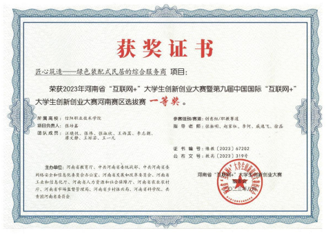2023年7月,yl9193永利张培鑫、李志朝、柯富豪等员工主持的《绿色装配式民居的综合服务商》和《聚氨酯改性沥青自修复黏合剂技术开发的引领者》两个项目,在2023年河南省“互联网+”老员工创新创业大赛中荣获省级一等奖和三等奖,指导教师张振明、赵家钰、李何被评为优秀指导老师。