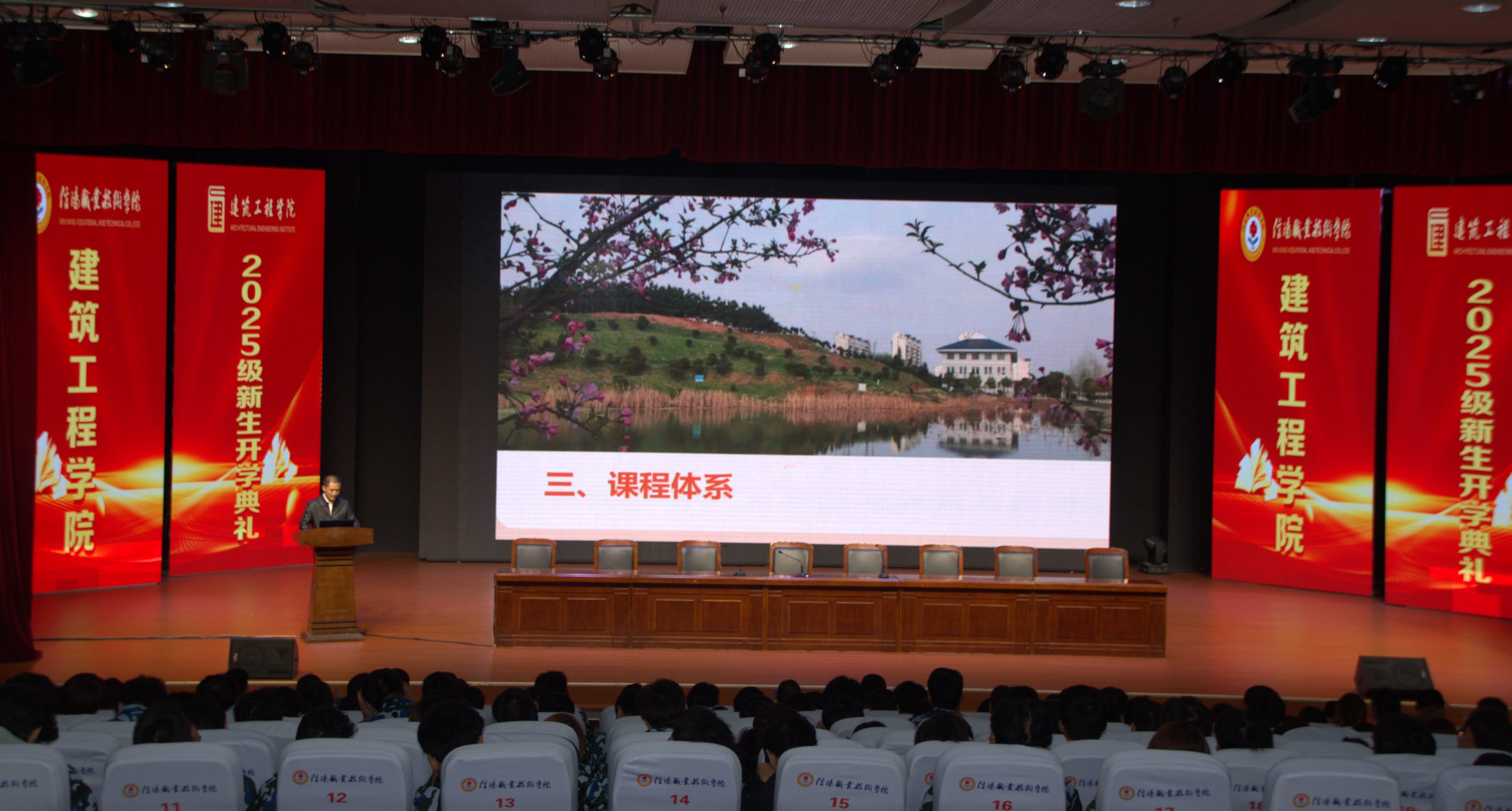岳建伟做开学典礼致辞,他代表全院师生向来自五湖四海的新同学表示最热烈的欢迎。并指出,大学三年是学习专业知识、锤炼职业技能、提升综合素养的关键时期,希望新生高瞻远瞩,砥砺品格,全面发展,为实现人生价值打下坚实基础。随后,2024级老生代表和2025级新生代表分别作了发言。