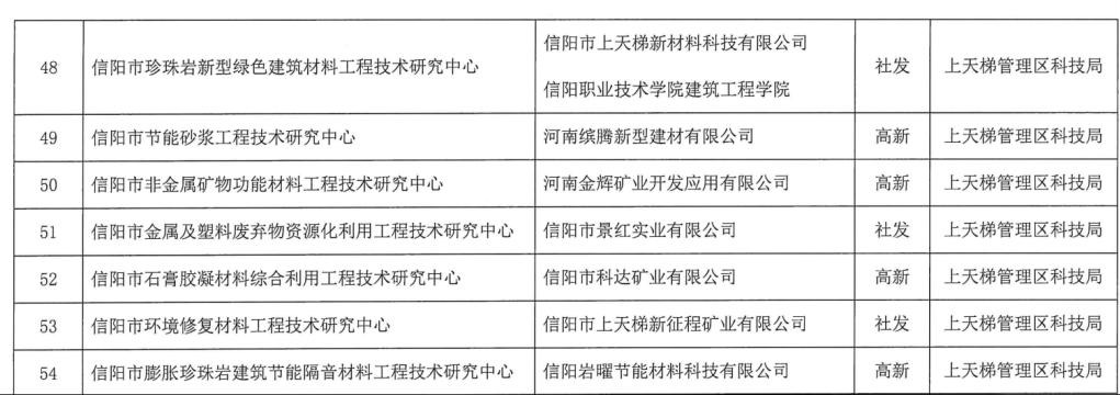 为进一步深化产教融合,积极打造校企合作、高效联动、协同育人典范与样板,公司yl9193永利与上天梯新材料科技有限公司联合建设“信阳市珍珠岩新型绿色建筑材料工程技术研究中心”。2022年7月19日,获批建设信阳市工程技术研究中心。